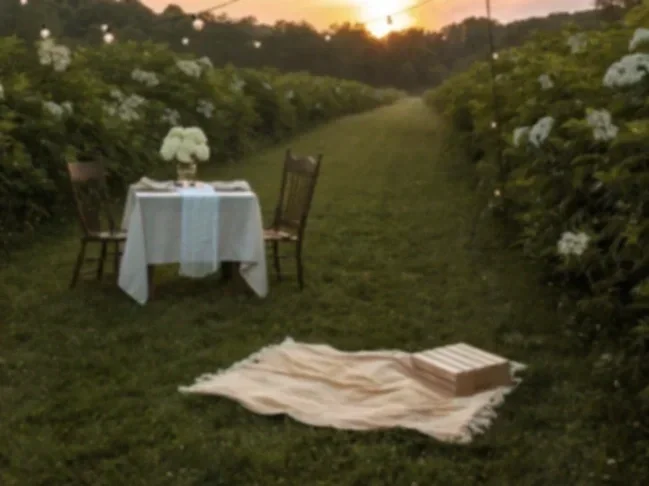 Our elderflower picnics invite you to slow down and savor the outdoors, whether you’re planning a romantic blanket picnic for two, a table-and-fire-pit setup for friends, or a larger gathering around our harvest table.