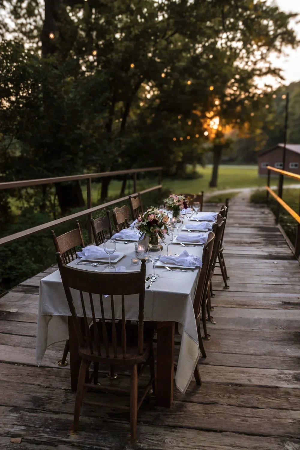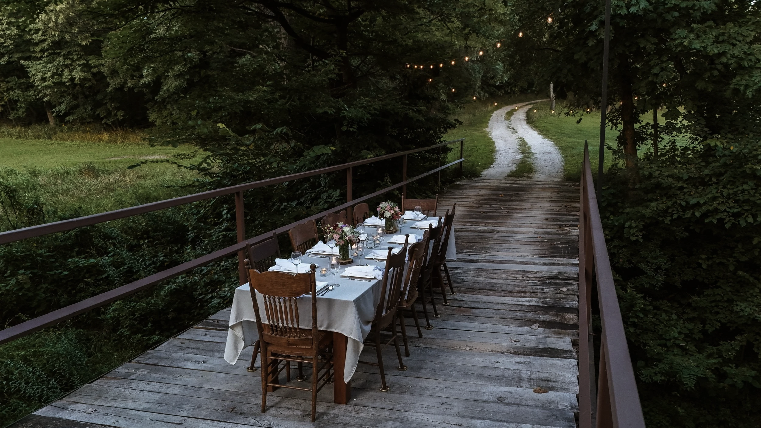 Included is a wood harvest table with seating for up to ten guests, lanterns, candlelight, and all tableware. Feel free to pack your own picnic meal or ask about local vendors.